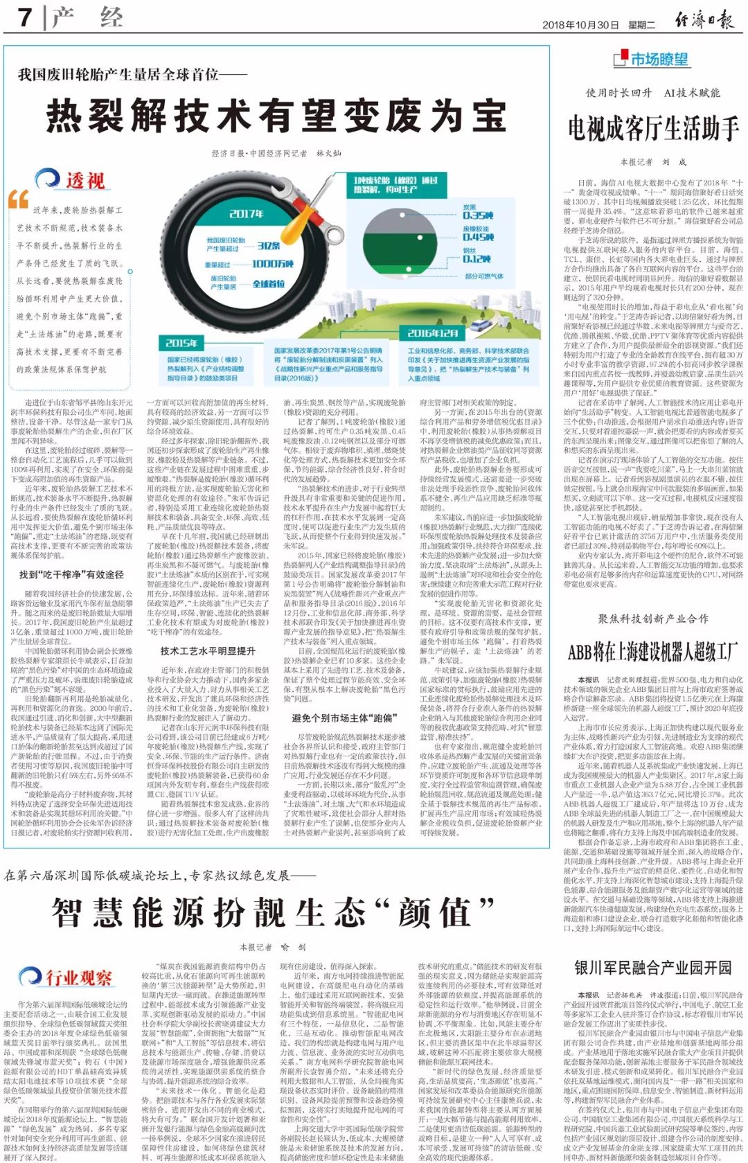 近日,《經(jīng)濟(jì)日?qǐng)?bào)》 、《中國(guó)經(jīng)濟(jì)網(wǎng)》主任記者林火燦采訪了中國(guó)輪胎循環(huán)利用協(xié)會(huì)會(huì)長(zhǎng)朱軍以及中國(guó)輪胎循環(huán)利用協(xié)會(huì)副會(huì)長(zhǎng)兼橡膠熱裂解專家組組長(zhǎng)、濟(jì)南恒譽(yù)環(huán)??萍脊煞萦邢薰径麻L(zhǎng)牛斌及行業(yè)相關(guān)專業(yè)人士,并參觀了采用濟(jì)南恒譽(yù)環(huán)保技術(shù)裝備,入選工信部《廢輪胎綜合利用行業(yè)準(zhǔn)入條件》的廢輪胎熱裂解項(xiàng)目,就廢輪胎污染、循環(huán)再生利用技術(shù)、熱裂解行業(yè)發(fā)展前景及相關(guān)政策等問(wèn)題與各位專家進(jìn)行了深入交流。并依據(jù)采訪內(nèi)容撰寫題為《我國(guó)廢舊輪胎產(chǎn)生量居全球首位——熱裂解技術(shù)有望變廢為寶》的文章,刊登于《經(jīng)濟(jì)日?qǐng)?bào)》。