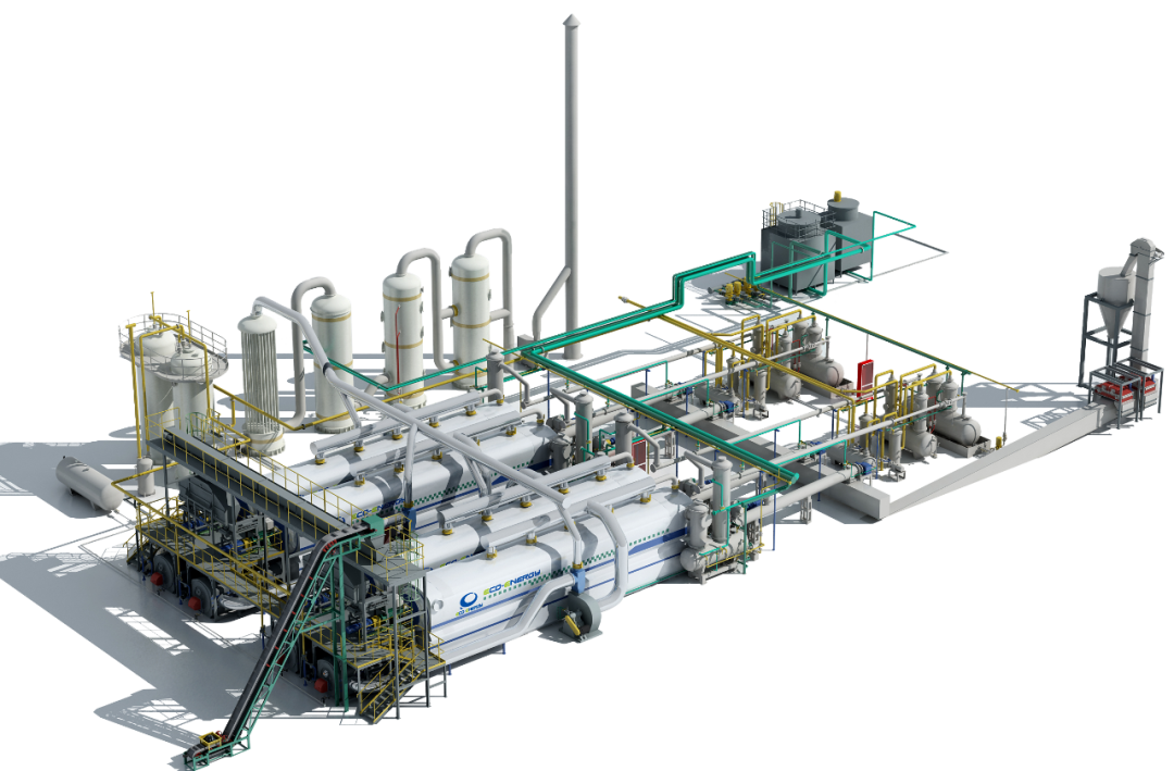 熱解技術(shù)充分利用工藝和結(jié)構(gòu)的雙重作用保障,實(shí)現(xiàn)進(jìn)出料系統(tǒng)和熱解系統(tǒng)的動(dòng)態(tài)密封、防聚合分液器的阻聚降塵、有害氣體的冷卻凈化等,在安全環(huán)保的前提下實(shí)現(xiàn)生產(chǎn)線的工業(yè)化穩(wěn)定運(yùn)行。