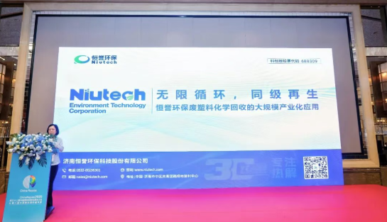 恒譽環(huán)保以“《無限循環(huán),同級再生——恒譽環(huán)保廢塑料化學回收的大規(guī)模產業(yè)化應用》”為本次大會帶來主題演講,當前我國每年產生6000萬噸廢舊塑料,不適用物理回收的低值廢塑料占比46%、回收率不足10%,大多采用焚燒填埋處理,如果其中50%采用化學循環(huán)技術,相當于低成本開發(fā)了一個6000萬噸的城市油田。針對行業(yè)的痛點問題,恒譽環(huán)保通過多年的技術積累與項目實踐,自主研發(fā)“工業(yè)連續(xù)化智能廢塑料熱解技術及成套生產線”,解決了大型熱解生產線應用過程中出現(xiàn)的“裂解系統(tǒng)結焦、進出料難以動態(tài)密封、產出物聚合”等多項世界性難題,能夠將傳統(tǒng)物理技術難以處理的混合廢塑料、海洋廢塑料、醫(yī)療廢塑料轉化為品質穩(wěn)定的再生能源產品,后續(xù)通過深加工可作為生產新塑料的化工原料,真正實現(xiàn)了同級化、高值化利用。既減少了對化石能源的依賴,又降低了碳排放和環(huán)境污染,為全球廢塑料污染治理提供了可驗證、可復制、可推廣的成熟方案,憑借突出的創(chuàng)新性、先進性、示范性,該套技術裝備榮獲中國科技領域最高獎項“國家科學技術進步獎”